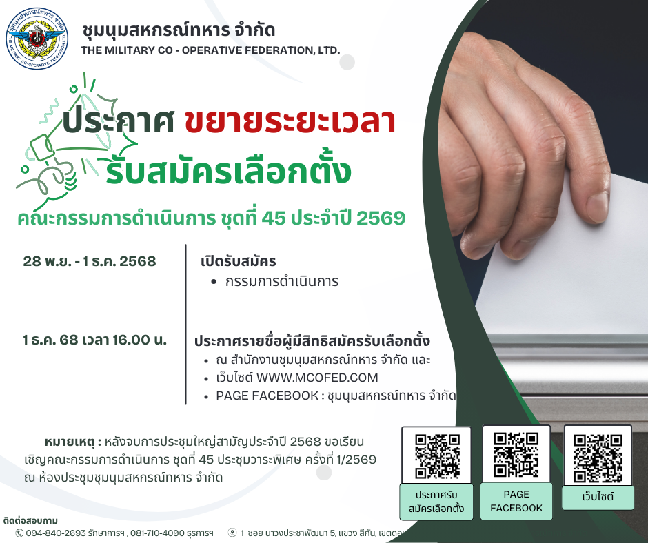 ชุมนุมสหกรณ์ทหาร จำกัด รับสมัครตำแหน่ง รองผู้จัดการ จำน…