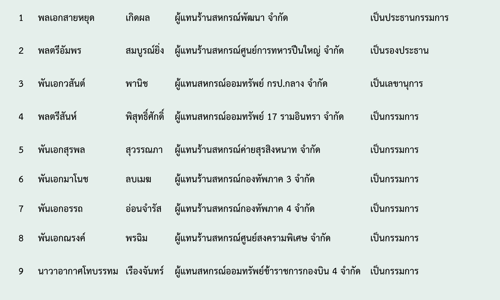 โดยได้เลือกผู้แทนสหกรณ์ เป็นคณะผู้จัดตั้ง ชุมนุมสหกรณ์ทหาร เพื่อลงชื่อในหนังสือขอจดทะเบียนจัดตั้งชุมนุมสหกรณ์ทหาร รวม 9 นาย คือ